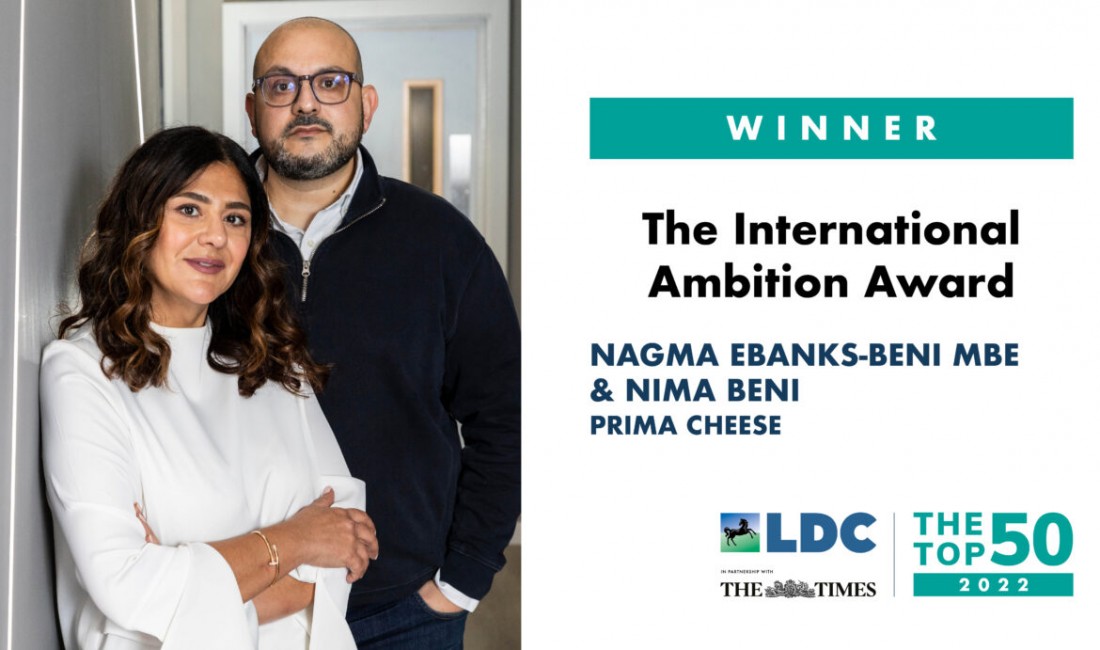 Nima Beni and Nagma Ebanks-Beni MBE, Co-CEOs of Prima Cheese, have won The International Ambition Award as part of LDC’s Top 50 Most Ambitious Business Leaders programme for 2022.